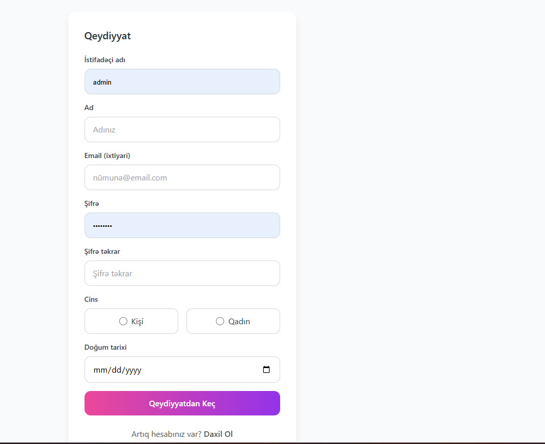 Texniki olaraq sistem PHP 8.1+ və MySQL 8.0+ üzərində qurulub, frontend hissədə isə HTML, CSS, JavaScript və TailwindCSS istifadə olunub. Responsive dizayn sayəsində platforma həm kompüter, həm də mobil cihazlarda problemsiz işləyir və istifadəçilərə rahat interfeys təqdim edir. Bundan əlavə, SAAS (Software as a Service) lisenziya sistemi ilə işləməsi platformanı kommersiya məqsədilə istifadəyə uyğun edir — domain əsaslı lisenziya, token yoxlama və avtomatik yenilənmə kimi funksiyalar mövcuddur.